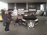 Szerencsére a kellemes időjárás miatt nem kellett hóláncot szerelni, azonban a hétvégén nyereményjátékunk témája volt a hóláncok rögzítése. Előzetes bemutató után már bátrabban vágtak bele a jelentkezők az időmérő hóláncszerelésbe. A tesztalany egy Thule CG-9 hólánc volt.