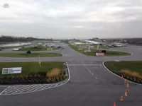 A drivingcamp területére belépve a festői környezetű tájban mindenki elveszett egy kicsit, hiszen külön élményt jelentett a rántópad és a lejtős hajtűkanyar modul hirtelen feltűnő erős fehér színe. Ehhez pár pillanat pásztázás után az off-road pálya, az országút modul és a többi tanpálya is csatlakozott.